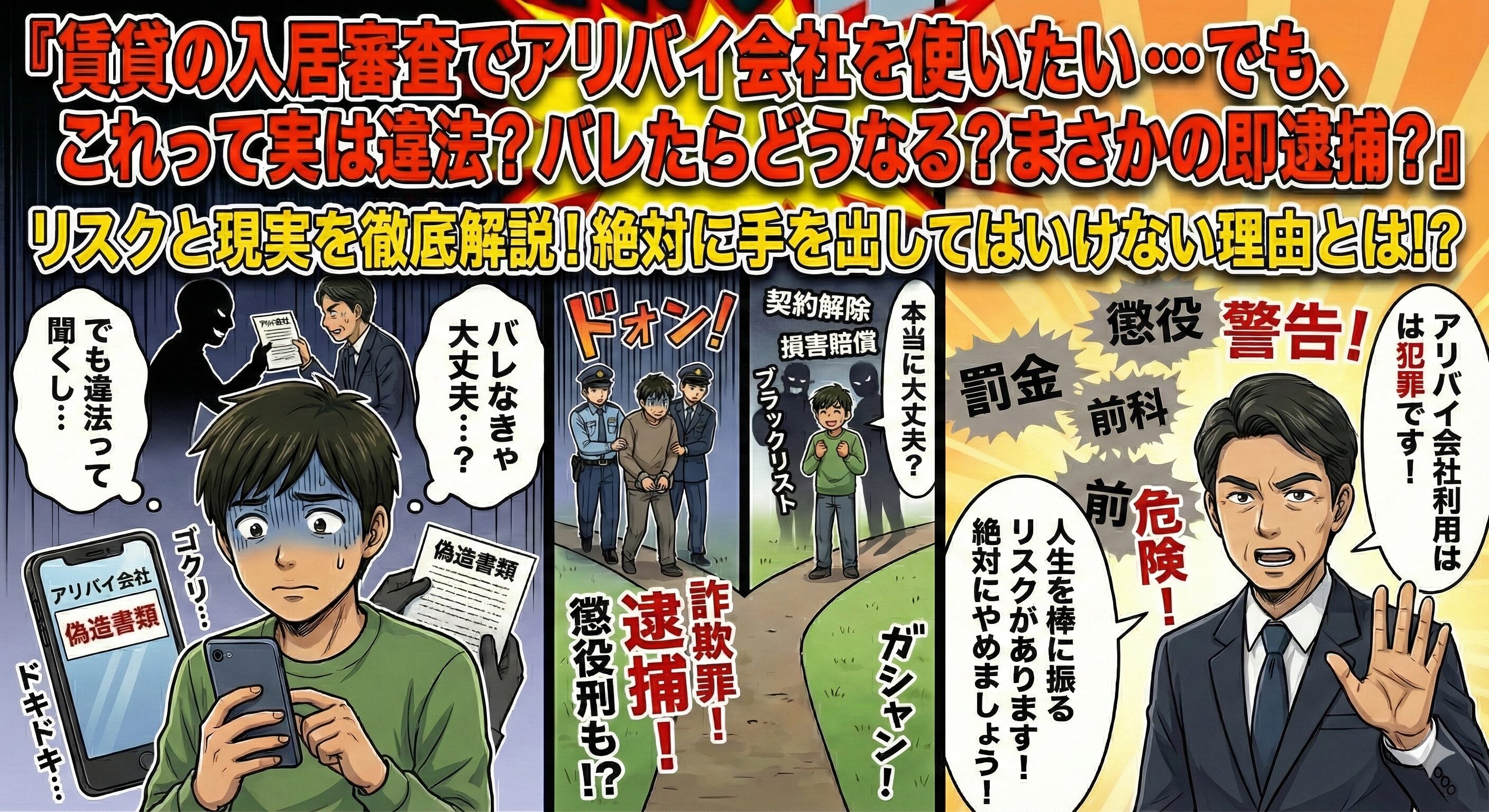 アリバイ会社で賃貸の入居審査をすると2年後の更新で思わぬ落とし穴がある! 【現状の整理】 まゆさんが直面している問題を客観的に整理すると、以下の3点に集約されます。 【問題の分析:業者が隠す不都合な真実】 1. アリバイ業者の「バラすぞ」は、自らの息の根を止める『究極の心中ボタン』である アリバイ会社が管理会社に「あの入居者は偽の勤務先を使っている」と密告することは、実質的に不可能です。 なぜなら、密告した瞬間にそのアリバイ会社は、虚偽の書類で審査を欺いた「不正業者」として管理会社や保証会社のブラックリス ...