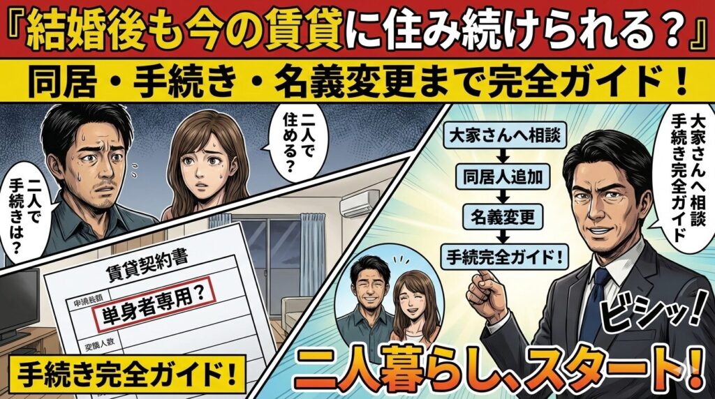- 同居開始にあたり、管理会社や大家への連絡義務やトラブル防止策を探している人